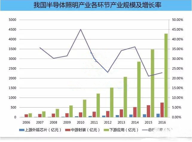 2016年是半導(dǎo)體照明行業(yè)波瀾壯闊的一年,10月1日,15w及以上普通照明用白熾燈在中國全面退市,LED照明產(chǎn)值首次突破五千億大關(guān),迎來了行業(yè)發(fā)展的輝煌時代。