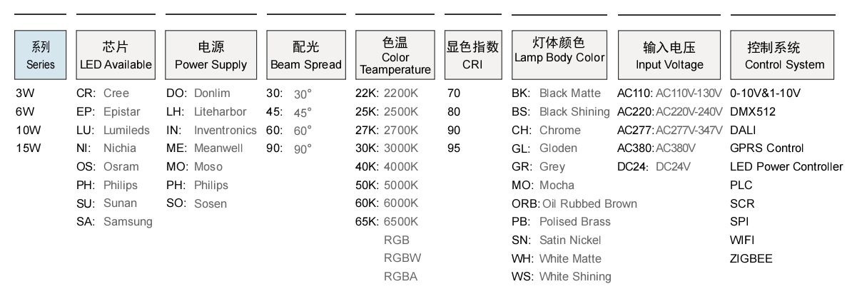 | 可選配光 | 30/40 | 30/40 | 30/40 | 30/40 | 30/40 | 30/40 |