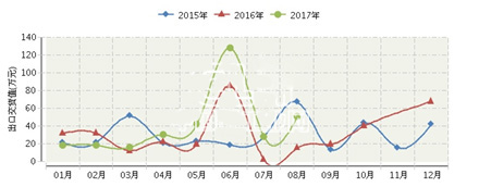 2017年上海照明燈具制造行業連續三年月度出口交貨值對比