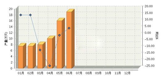 ?? 2017年上半年,陜西發光二極管(LED)累計產量68.00萬只,同比增長-1.45%。其中:?6月份完成產量19萬只,同比增長5.56%。