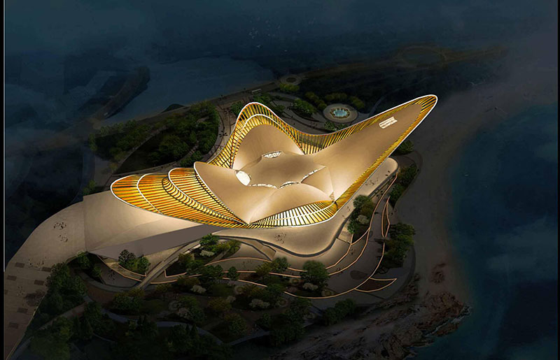 由北京城建建筑部承攬的鳳凰島綜合文化中心項目位于青島西沿海岸新區,與青島市區隔灣相望,是西海岸新區入口處的張名片。作為青島市黃島區(西海岸新區)鳳凰島國際旅游度假區內唯一的地標性建筑,同時也是集團公司在青島市場承接的首個鋼結構工程,該項目被列為黃島區重點工程。因其外部造型美觀、欣賞度極高,曲線線條復雜,外形似降落在金沙灘上的一只鳳凰,故又稱之為“鳳凰之舟”。