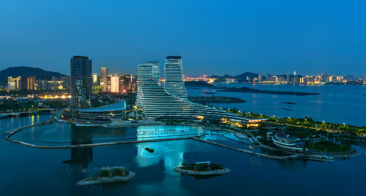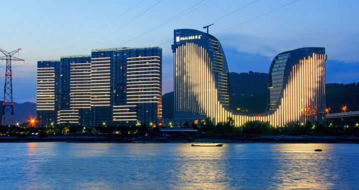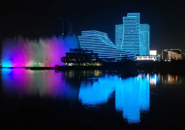 整個海滄灣沿線夜景工程以廈門中心、泰地海西中心、融信海上城三座大型城市綜合體為主要媒體展示節(jié)點(diǎn),沿岸辦公住宅樓立面動態(tài)燈具相呼應(yīng),表達(dá)“山水相依”的動畫主題,形成7公里長海滄灣沿海景觀帶連綿不絕、氣勢磅礴,山、海、湖、島、城渾然一體的海滄夜景感受。建筑山墻的彩色投光通過海滄大橋動態(tài)聯(lián)動將海滄區(qū)與廈門本島緊密聯(lián)系在一起。